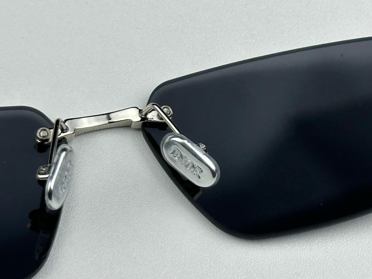 Experience timeless elegance with these authentic Dior rimless sunglasses, crafted for those who appreciate high-end fashion and superior comfort. Featuring a sleek, minimalist design, this model showcases signature DIOR nose pads, polished metal hardware, and ultra-lightweight dark lenses that deliver both style and UV protection.